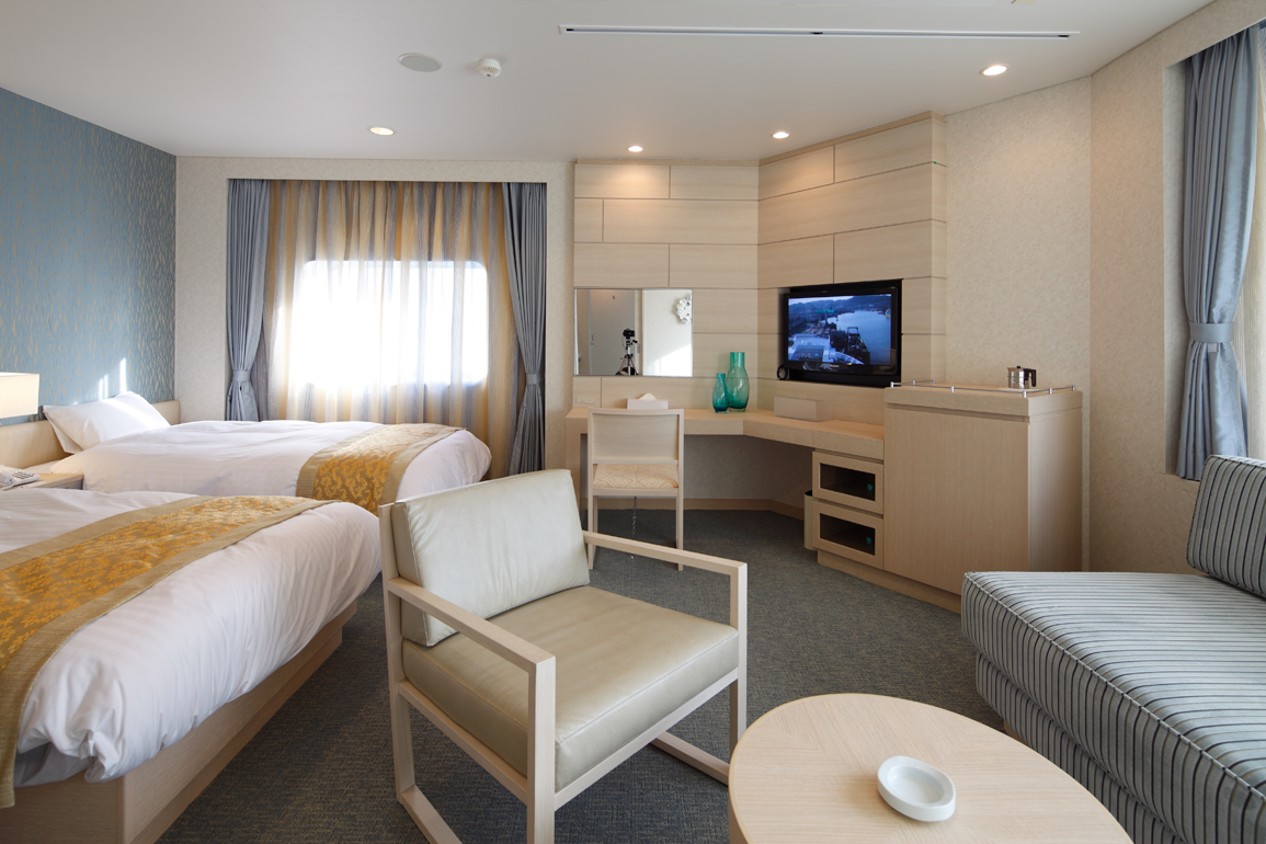 客室は約52平方メートルの広さを誇るロイヤルスイートから、バスや電車並みの運賃で気軽にご利用いただける寝台等級まで幅広くご用意。